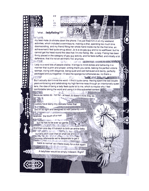 Ladyfister is a sapphic fisting zine by sex educator Ruby Rare, released in late 2025/early 2026 as a diy publication exploring queer pleasure, education, and community stories. It features intimate stories, sexual health information, and art.